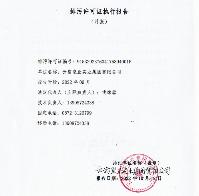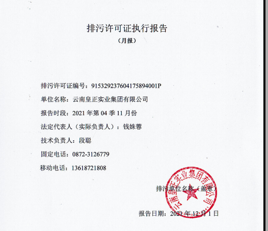 云南皇正實(shí)業(yè)集團(tuán)有限公司2021年1-10月排污許可證執(zhí)行報(bào)告月報(bào) /temp/1月排污許可證執(zhí)行報(bào)告.pdf/temp/2月排污許可證執(zhí)行報(bào)告.pdf/temp/3月排污許可證執(zhí)行報(bào)告.pdf/temp/4...