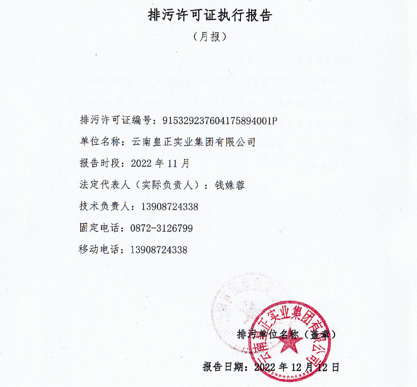2022年云南皇正實(shí)業(yè)集團(tuán)有限公司排污許可證季報(bào) - 第四季度 2022年云南皇正實(shí)業(yè)集團(tuán)有限公司排污許可證季報(bào)-第四季度