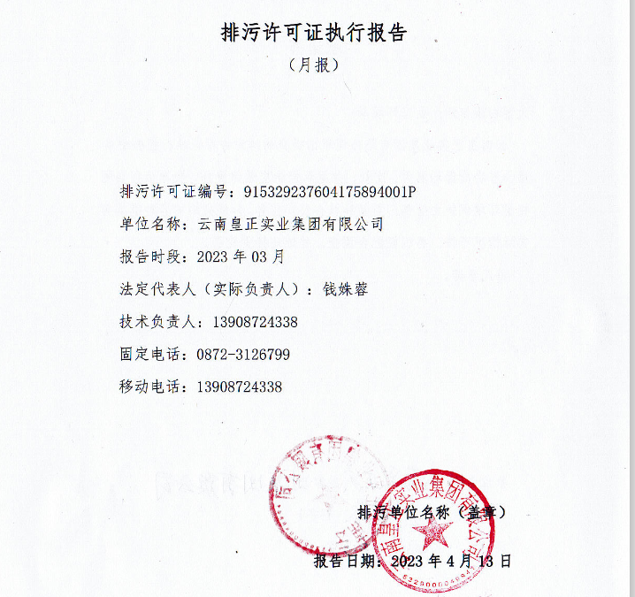 云南皇正實(shí)業(yè)集團(tuán)有限公司 2023年2月自行監(jiān)測(cè)報(bào)告 2023年2月自行監(jiān)測(cè)報(bào)告(月報(bào))