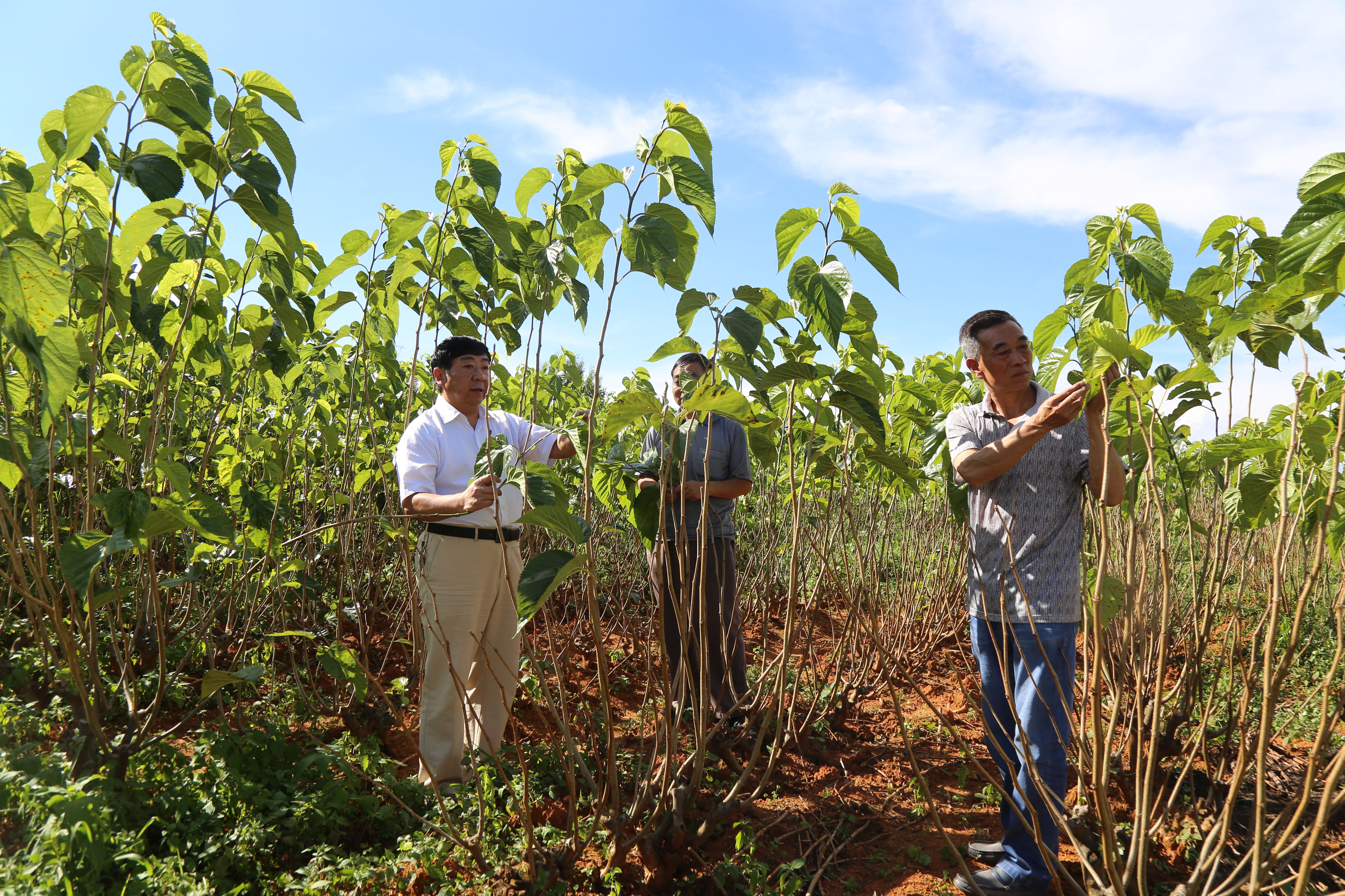 隨后,在村委會工作人員的帶領下深入桑園進行實地調(diào)研。了解目前桑葉種植基地的規(guī)模、管理模式、桑葉長勢、有無病蟲害等情況。